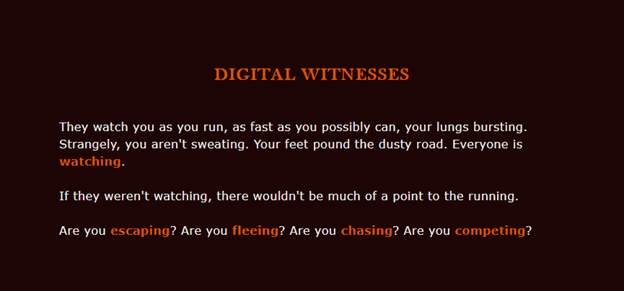 Twine appeals to me in its usage of “nonlinear stories” as I will definitely be pursing this option. A potential downside is the lack of front facing UI advertised on the site. This might lead me to veer more toward Ren’Py in its abilities. One game that appealed to me, here was “Digital Witness” (https://ifdb.org/viewgame?id=tj3j2osc0181854n).